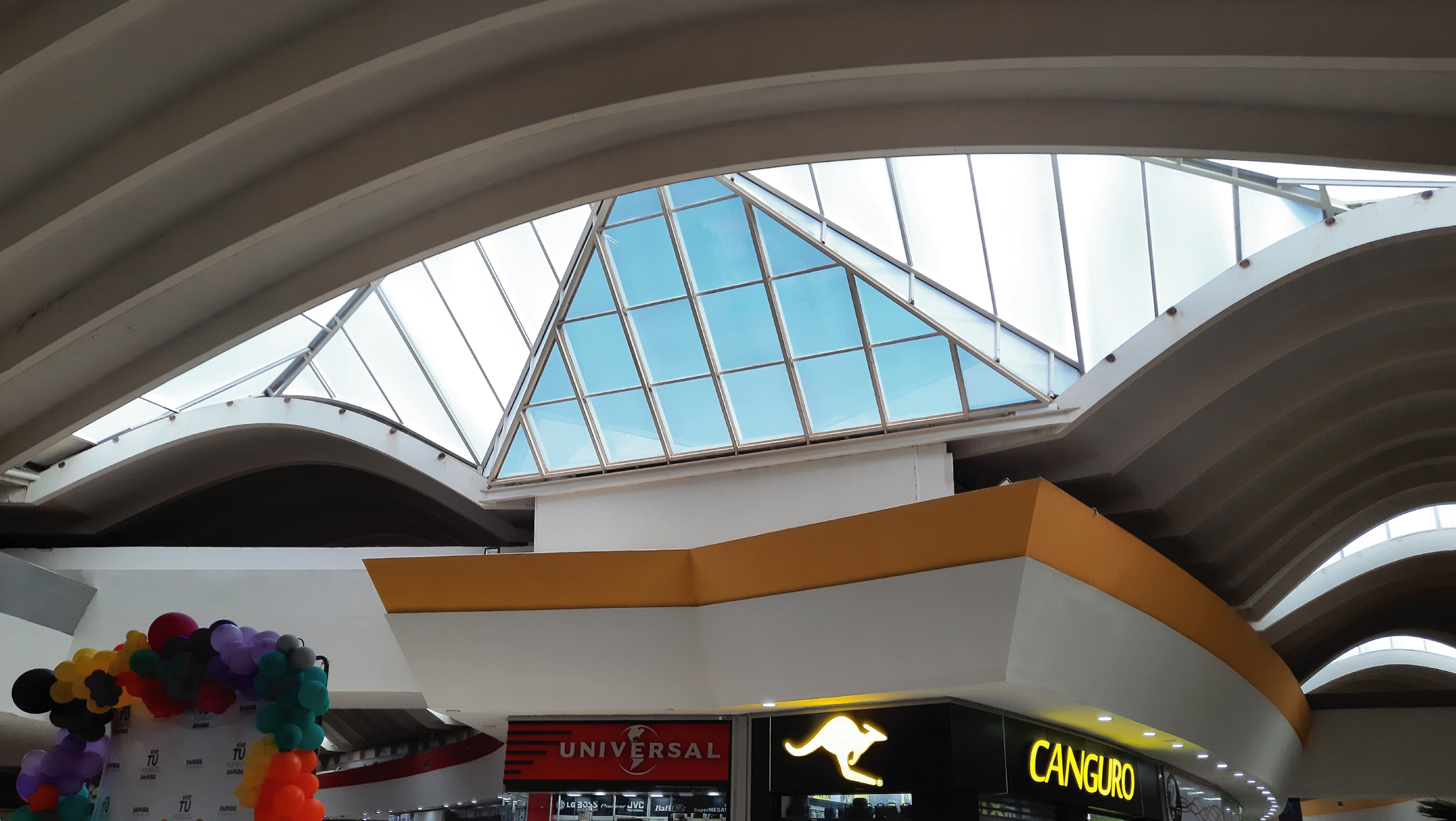 Restructuración y cambio de cubierta con Láminas de Policarbonato Alveolar 10mm en color Gris Acero. En la zona de restaurantes