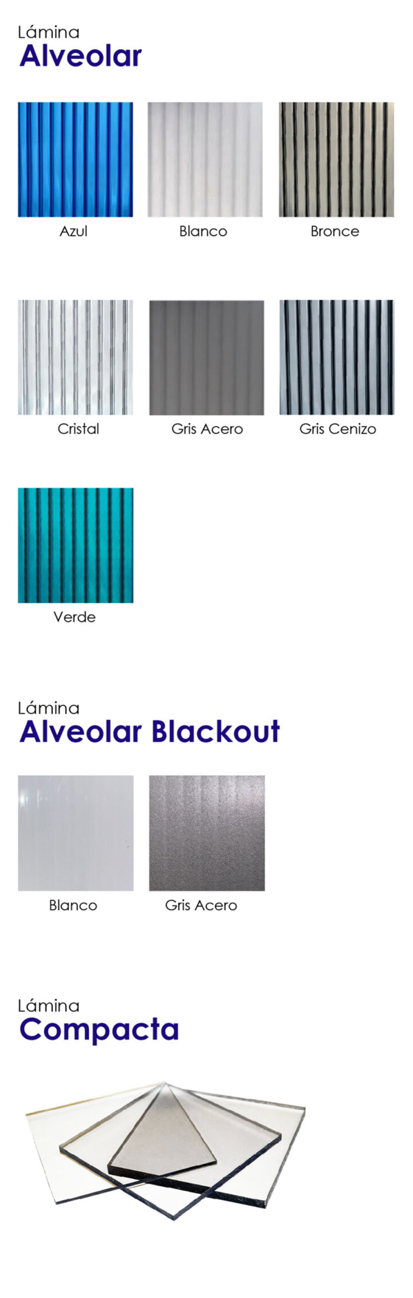 Las Láminas tipo compacta pesan la mitad de un vidrio del mismo espesor, y las tipo alveolar pesan 10 veces menos.