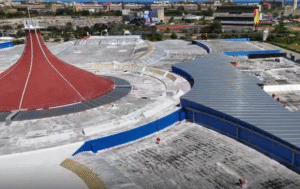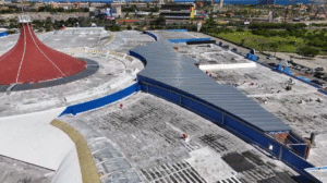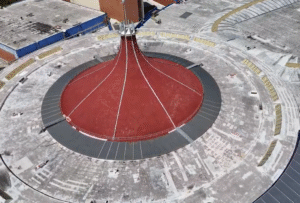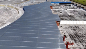 Restructuración y cambio de cubierta con Láminas de Policarbonato Alveolar 10mm en color Gris Acero. En la zona de restaurantes