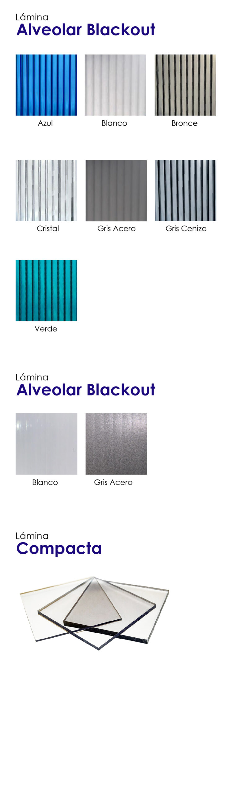 Las Láminas tipo compacta pesan la mitad de un vidrio del mismo espesor, y las tipo alveolar pesan 10 veces menos.
